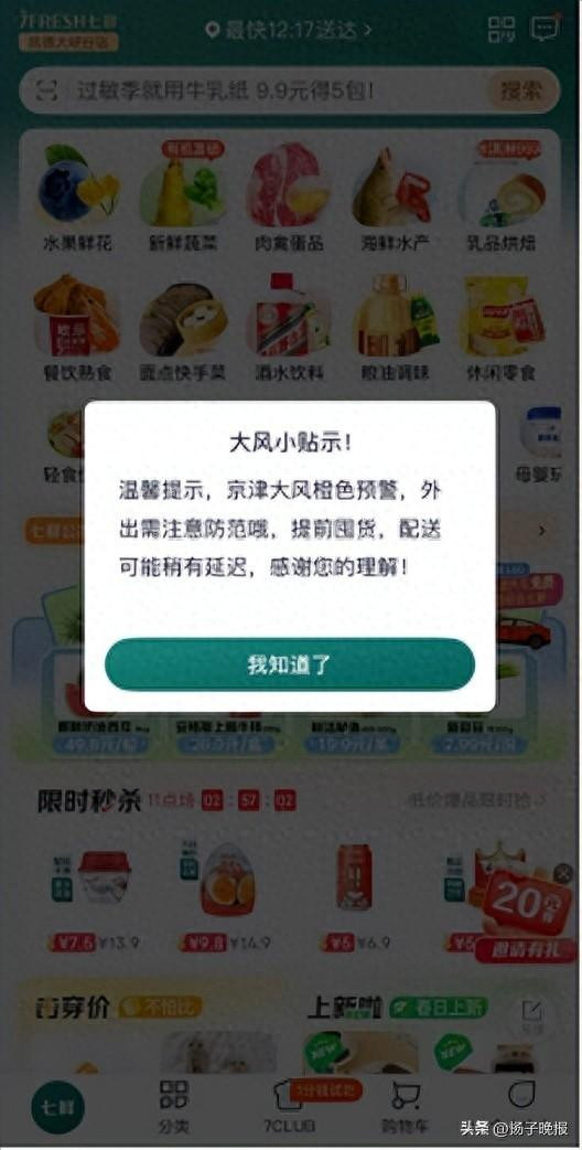 记者了解到,面对极端天气考验,京东旗下即时零售平台京东七鲜已启动"极端天气保供预案",目前京东七鲜已对华北区域的门店和卫星店提前加大了民生物资储备,包括新鲜蔬菜、水果、肉禽蛋以及水产等民生商品,确保极端天气的民生供应充足和稳定的价格。